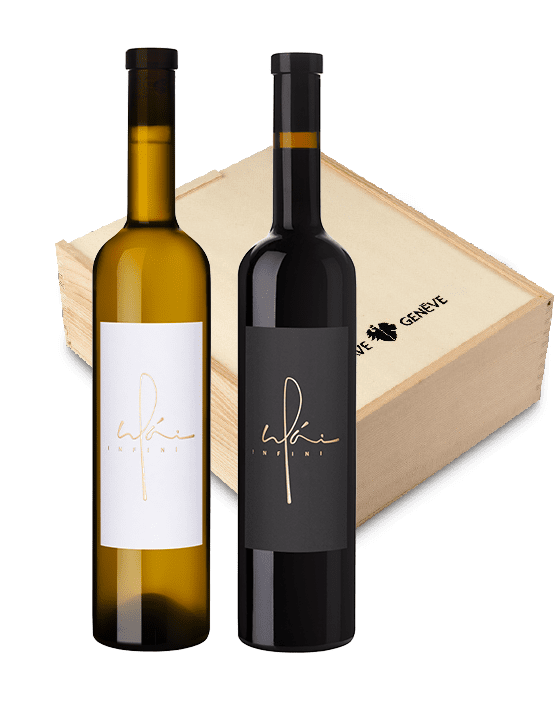 Fruits de l’expérience et du travail de nos œnologues, ces vins sont issus d’un assemblage de cépages élevés séparément en fûts de chêne. L’Infini Rouge est un mariage subtil de Cabernet Sauvignon, Cabernet Franc et Merlot. L’Infini Blanc est issu d’un assemblage de Chardonnay, Viognier et Sauvignon Blanc, récompensé par une médaille d’or à la Sélection des Vins de Genève 2022. À déguster pour un plaisir infini.