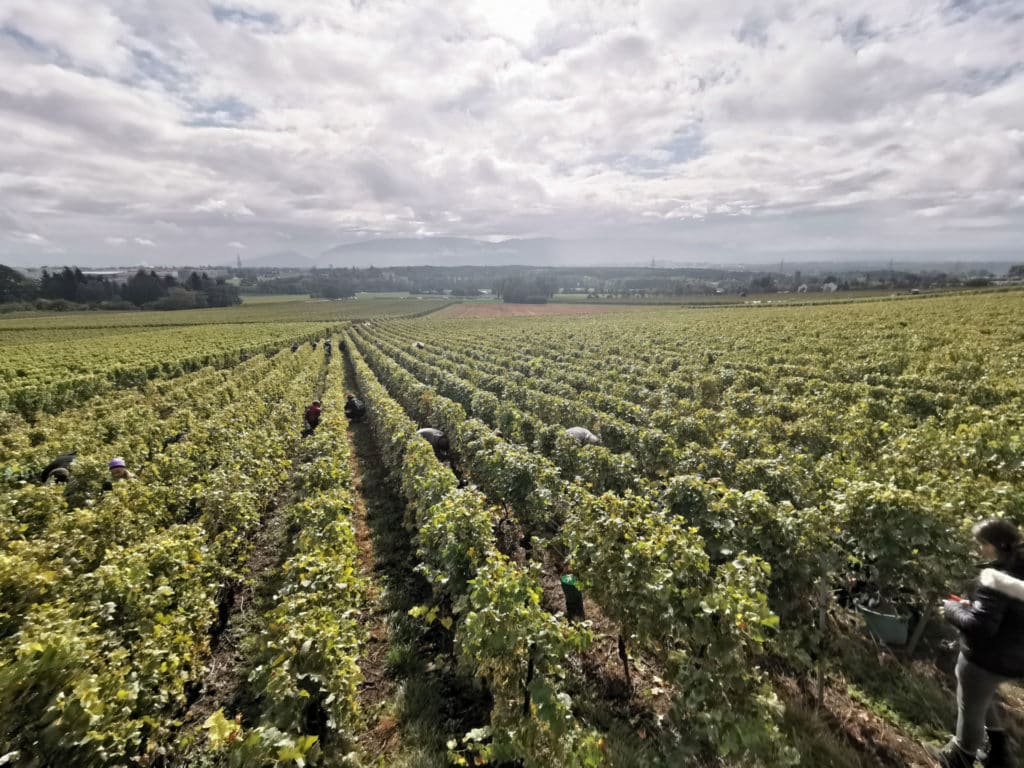 Notre œnologue Florian Barthassat met la vigne et nos vins sous les projecteurs ! À La Cave de Genève, les vendanges ont débuté le 4 septembre avec la récolte des Chardonnay et Pinot Noir vinifiés pour l’élaboration de nos vins mousseux. Pour récolter la suite de nos cépages à l’optimum, nous avons fermé la cave pendant plusieurs jours avant de reprendre la récolte avec le Riesling-Sylvaner et d’enchaîner jusqu’à mi-octobre avec le Cabernet Sauvignon.